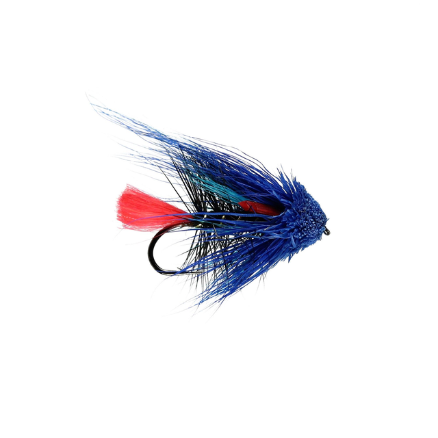 The Blue Zulu XL Muddler is a larger, more aggressive version of the classic Blue Zulu, designed to stand out in the deep, peaty waters of the Hebrides. Its bold black body, electric blue hackle, and vibrant red tail create a striking contrast, while the muddler head adds buoyancy and lifelike movement. Ideal for rough conditions and windy days, this fly excels when fished in a wave as part of a team. A must-have for anglers targeting larger trout in Hebridean lochs.
